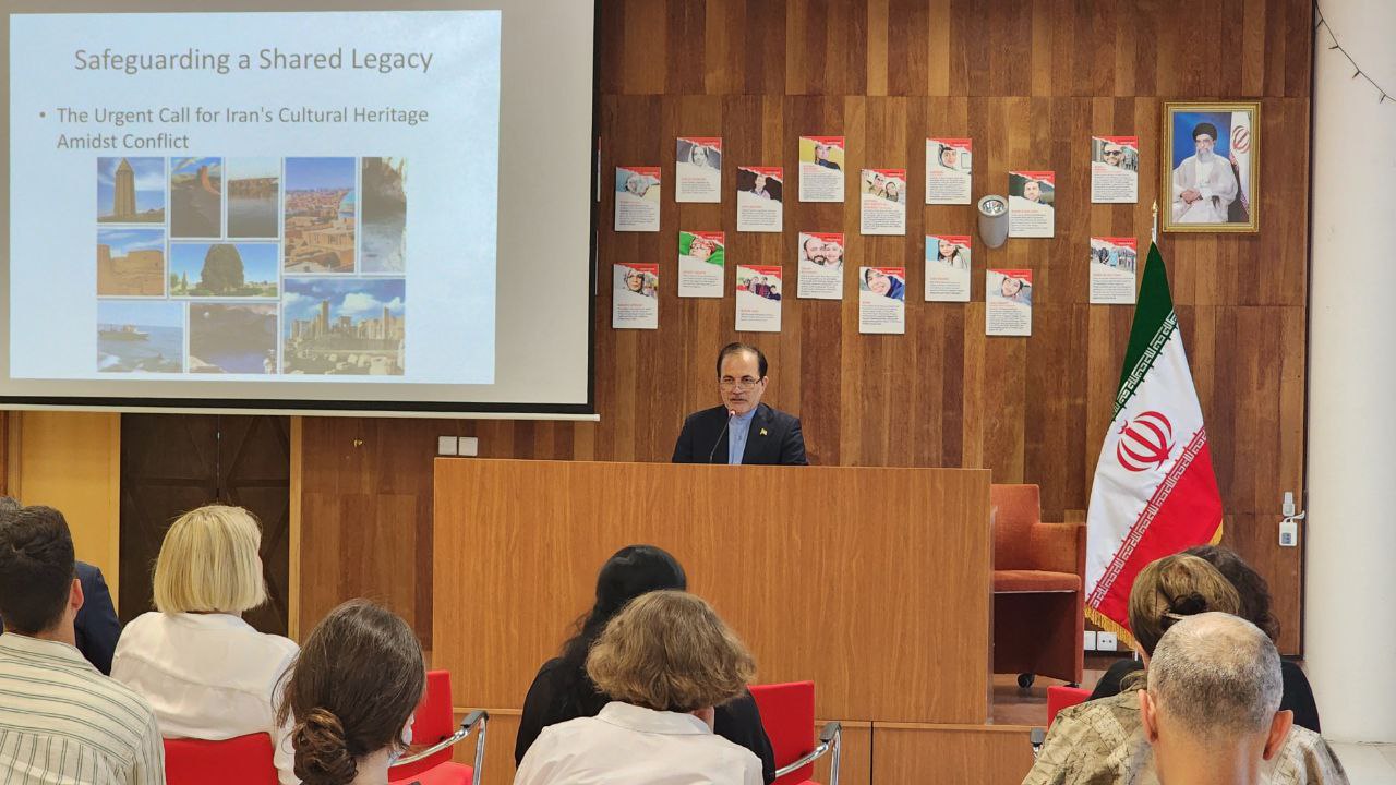 در بخش نخست این نشست، کارشناس دیپلماسی عمومی و رسانه ای سفارت، از طریق ارائه پاورپوینت، ضمن توضیح و تشریح اتفاقات جاری، به موضوع تهدید میراث فرهنگی مشترک واقع در جای جای کشورمان پرداخت. وی با بیان ارزش تاریخی و فرهنگی تعداد بسیاری از آثار و ابنیه و بافت تاریخی موجود در نقاط مختلف کشور مثل اصفهان، یزد و شیراز، حملات رژیم صهیونیستی را تهدیدی علیه آنها قلمداد کرد. اقدامات پیشگیرانهای را که ایران برای محافظت از این میراث انجام داده است، از جمله تعطیلی بناها و جابجایی آثار، مورد اشاره قرار داد و به درخواستهای رسمی ایران از نهادهای بینالمللی مانند یونسکو جهت اهتمام به حفظ آثار مذکور اشاره شد. سپس به روابط تاریخی، فرهنگی و زبانی عمیق میان ایران و گرجستان پرداخته و بر نقش هویتساز این میراث مشترک در تقویت همبستگی تأکید گردید. ارائه راهکارهایی برای مشارکتهای دانشگاهی، کمپینهای آگاهیبخش، همکاری با سازمانهای بینالمللی و فعالسازی نهادهای مدنی به یک فراخوان جهانی برای حفظ این میراث مشترک پیشنهاد گردید.